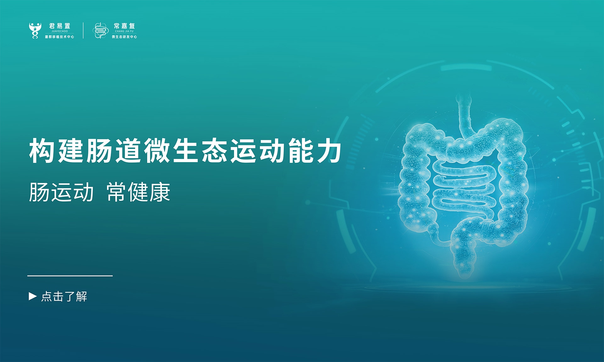 君易置生物科技是一家集臨床和基礎研究、S·FMT?運動菌群移植技術服務及微生態(tài)產品和方案研發(fā)為一體,專注于人體腸道微生態(tài)能力建設和個性化康復的高新技術企業(yè) 。公司秉承“腸運動,常健康”的核心理念,以“運動菌群舒暢輕盈”為研發(fā)邏輯,嚴選具有“運動菌群特征”的優(yōu)秀供體,研發(fā)調配促進菌群定植的定植伴侶,致力于通過科學調配菌群定植配方,提升患者的腸道微生態(tài)運動能力,實現(xiàn)疾病預防與治療。